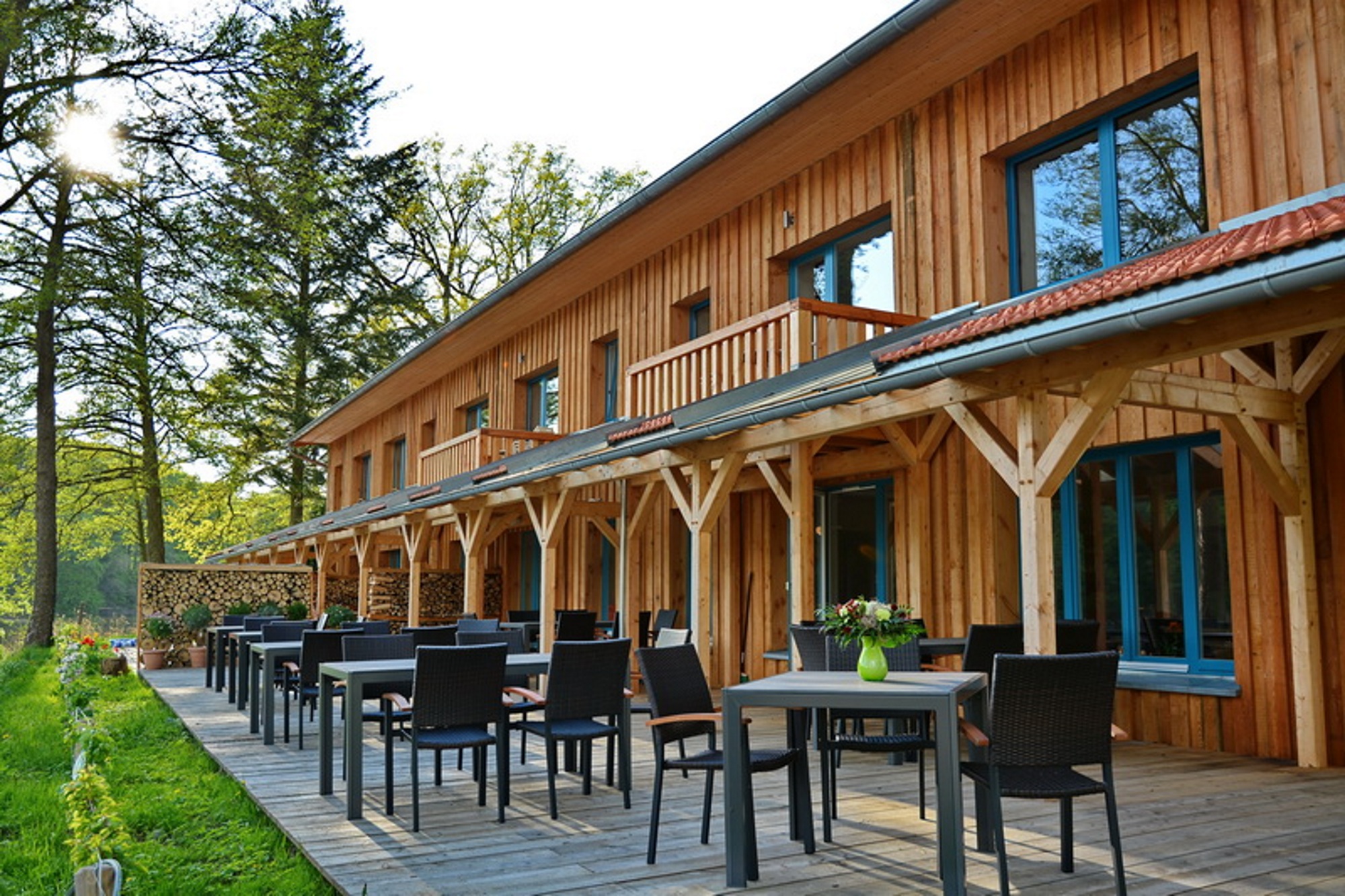 Das Besondere: das Seehaus liegt auf einer Halbinsel in einem der tausend Seen der Mecklenburgischen Seenplatte, dem Kreuzsee, mit einem privaten Badestrand. Das Anwesen hat vier große Wohnungen, sechs Zimmer und einen eigenen Gasthof. Angeboten werden hier zahlreiche saisonale Gerichte nach Rezepten aus der Region, dazu hausgemachter Kuchen. Traumhaft ist die Seeterrasse zu jeder Jahreszeit. Wenn die Sonne wärmt, sitzt ihr hier draußen fast mit den Füßen im Wasser. Ist es zu kalt, verzieht ihr euch in die Gaststube und wärmt euch auf. Hier ist es wohlig warm, dank Kaminfeuer und Fußbodenheizung. Im separaten Gastraum mit Eichendielen könnt ihr euch mit Freunden oder Verwandten treffen und nette Feste feiern.